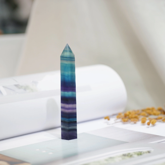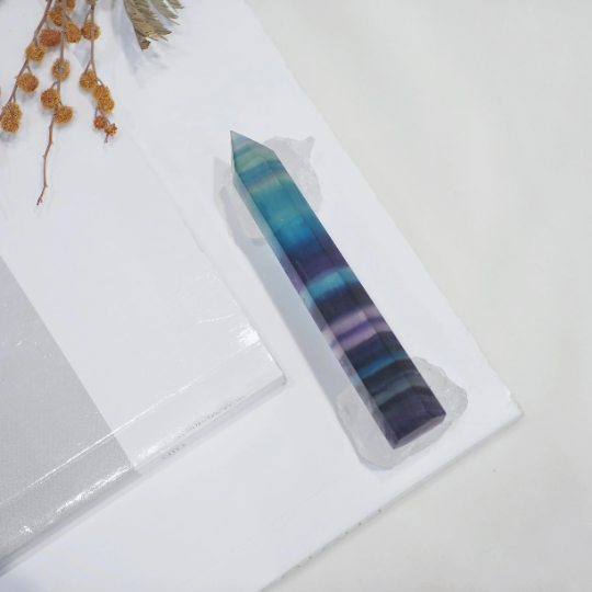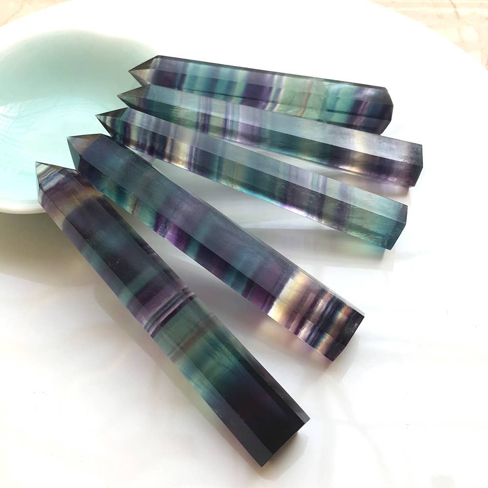 Rainbow Fluorite Crystal Tower Point Generator - Detox